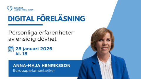 Den 28 januari kl.18-19 föreläser europaparlamentariker Anna-Maja Henriksson om sina personliga erfarenheter av ensidig dövhet. Föreläsningen hålls digitalt via Zoom…