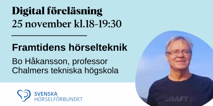 Den 25 november kl.18 föreläser Bo Håkansson, professor i signalbehandling och medicinsk teknik, om det nya benledningsimplantatet Sentio System via Zoom. Det nya systemet har krävt två decennier av intensiv forskning och utveckling. Håkansson tilldelades det stora hörselpriset från Hörselforskningsfonden…