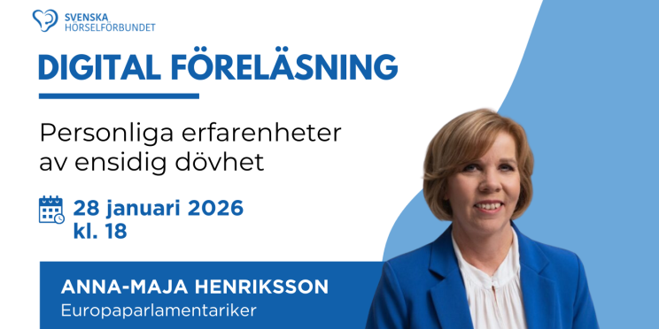 Den 28 januari kl.18-19 föreläser europaparlamentariker Anna-Maja Henriksson om sina personliga erfarenheter av ensidig dövhet. Föreläsningen hålls digitalt via Zoom och skrivtolkas. Henriksson drabbades av plötslig hörselnedsättning (sudden deafness) under studietiden och har sedan dess varit i det närmaste döv…
