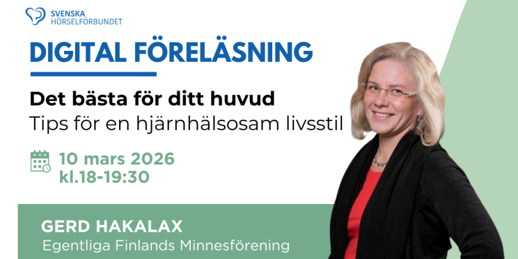 Den 10 mars 2026 föreläser Gerd Hakalax om hur man kan ta hand om sin hjärnhälsa. Föreläsningen Det bästa för ditt huvud – tips för en hjärnhälsosam livsstil hålls via Zoom kl. 18-19.30 och skrivtolkas. Gerd Hakalax, koordinator vid Egentliga…