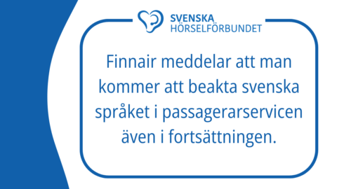 Finnair meddelar i ett pressmeddelande att flygbolaget framöver kommer att beakta svenskan i både välkomstmeddelanden och utrop ombord. Man betonar…