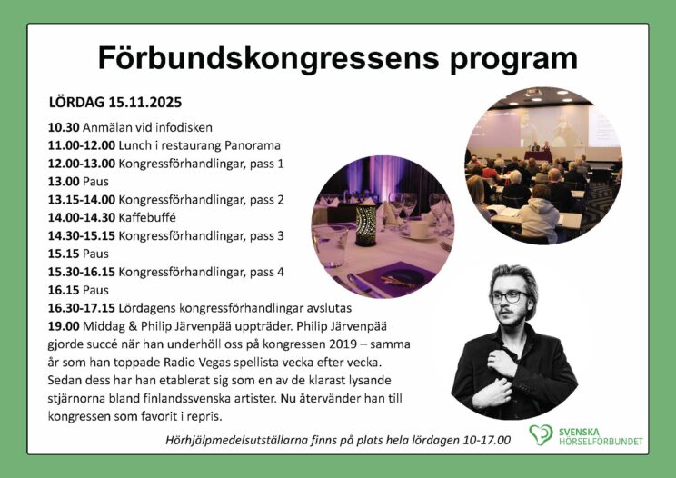 Välkommen på Svenska hörselförbundets kongress 15-16.11.2025 på Scandic Rosendahl i Tammerfors.